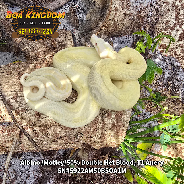Male 2022 Albino Motley 50% Double Het Blood, T1 Anery